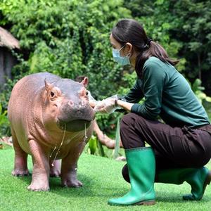 當日,非洲河馬菲菲在廣州長(cháng)隆野生動(dòng)物世界迎來(lái)兩周歲生日。菲菲是長(cháng)隆人工育幼長(cháng)大的雌性河馬寶寶,目前體重超過(guò)200公斤。