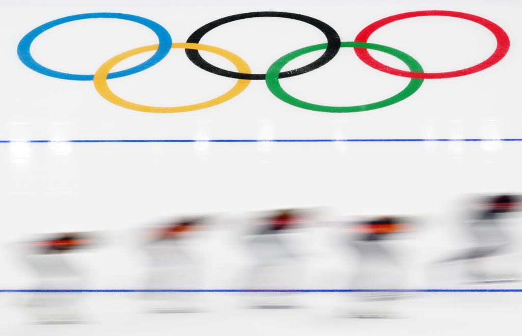 速度滑冰運動(dòng)員在國家速滑館“冰絲帶”里訓練