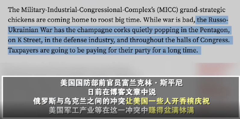 “俄烏沖突爆發(fā)以來(lái),五角大樓(美國國防部)、K街(華盛頓游說(shuō)公司聚集地)、軍工企業(yè)以及整個(gè)國會(huì )大廈內,都在悄悄地開(kāi)香檳慶祝?!?/strong>曾在美國國防部長(cháng)辦公室工作26年的富蘭克林·斯平尼如此點(diǎn)評。