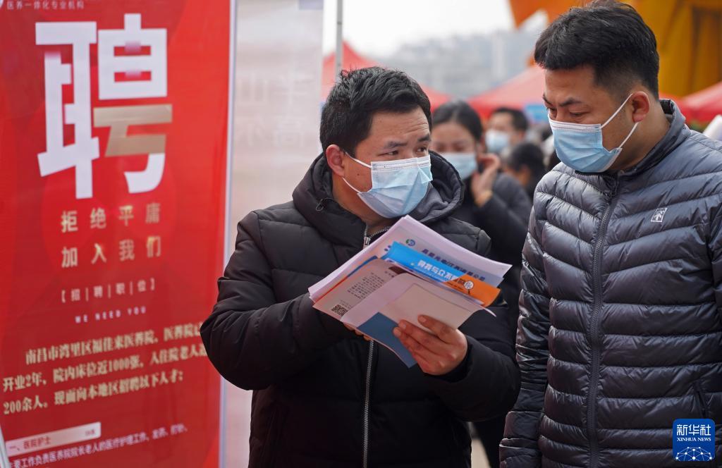 2月25日,江西省南昌市灣里管理局開(kāi)展“春風(fēng)行動(dòng)”線(xiàn)下招聘活動(dòng)。這是求職者在招聘會(huì )現場(chǎng)交流。新華社記者 萬(wàn)象 攝