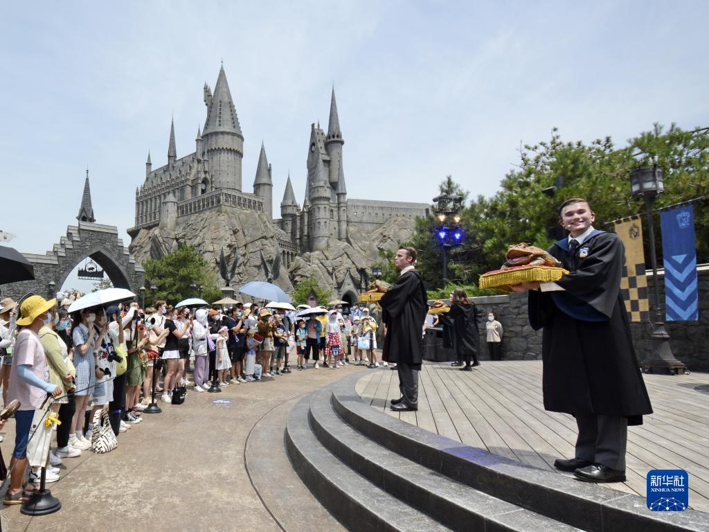 游客在北京環(huán)球影城主題公園內觀(guān)看表演(2022年6月25日攝)。新華社記者 李欣 攝