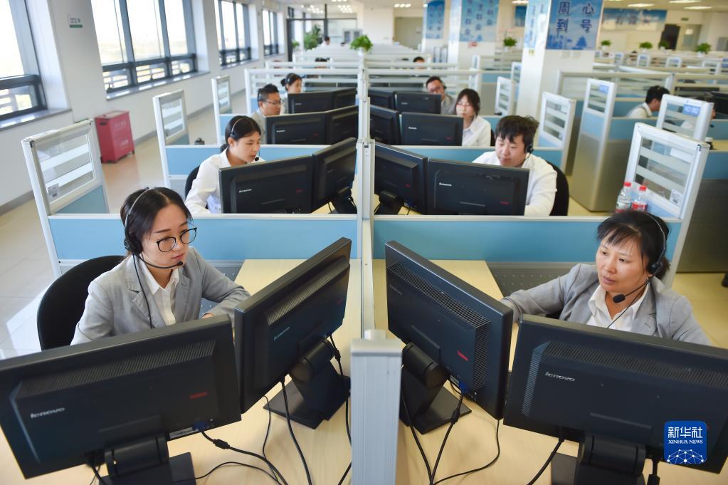 在位于北京經(jīng)濟技術(shù)開(kāi)發(fā)區的12345市民熱線(xiàn)話(huà)務(wù)大廳,工作人員接聽(tīng)熱線(xiàn)電話(huà)(2019年11月13日攝)。新華社記者 彭子洋 攝