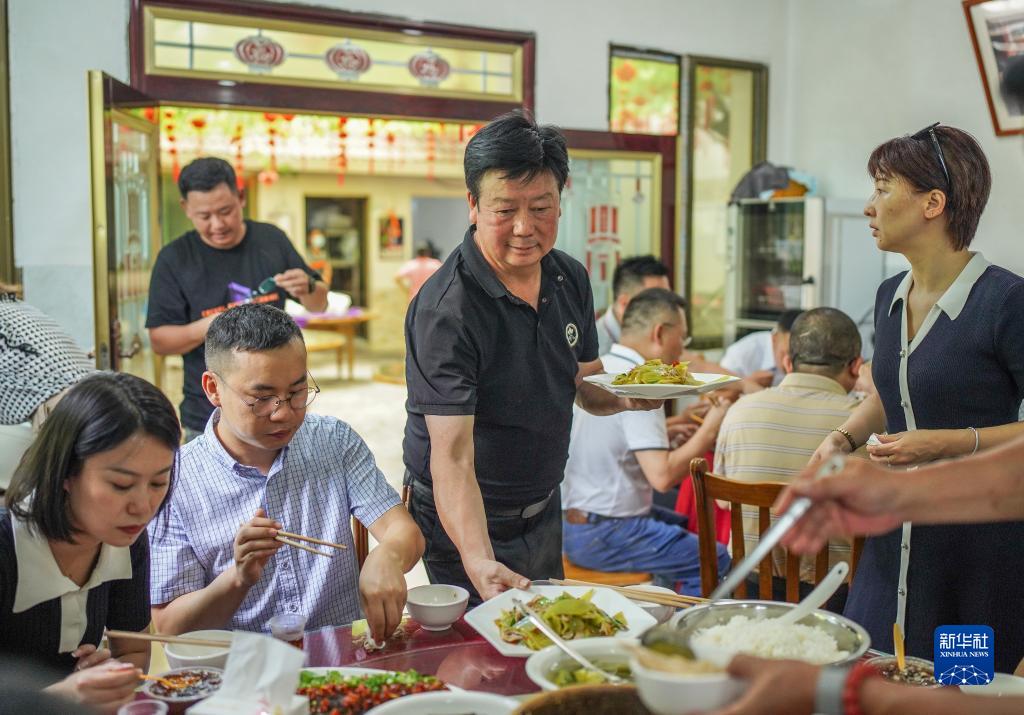 貴州省遵義市播州區楓香鎮花茂村村民王治強為到農家樂(lè )就餐的游客上菜(2022年6月28日攝)。新華社記者 陶亮 攝