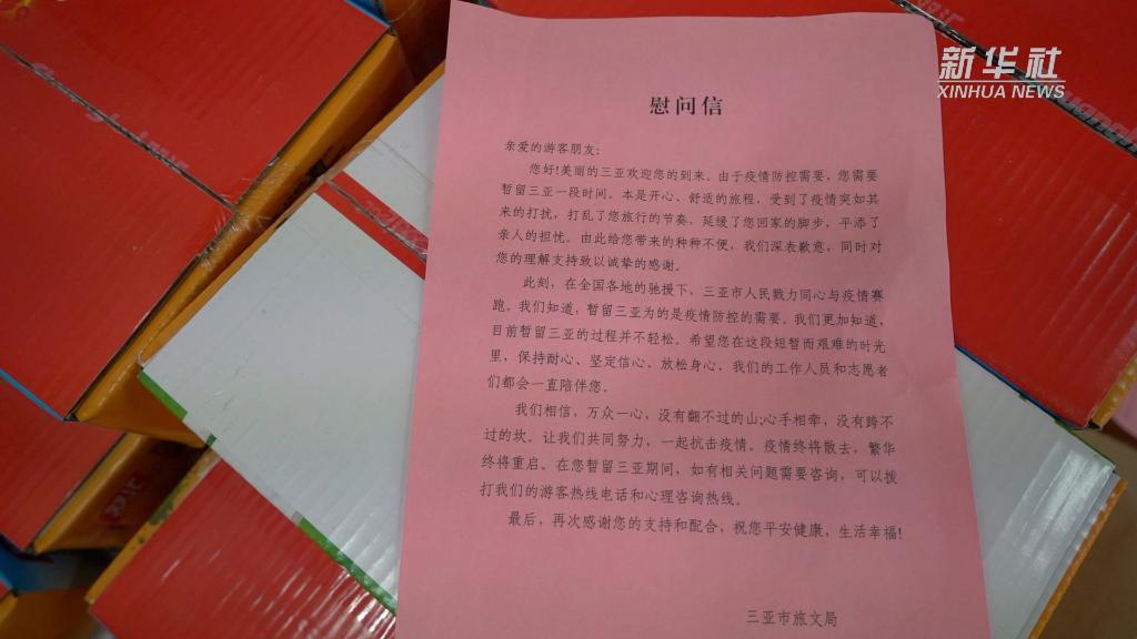 在“愛(ài)心包”里,記者看到了一封來(lái)自三亞市旅文局給滯留游客的慰問(wèn)信,信中寫(xiě)道:“目前暫留三亞的過(guò)程并不輕松,希望您在這段短暫而艱難的時(shí)光里,保持耐心、堅定信心、放松身心,我們的工作人員和志愿者們都會(huì )一直陪伴您?!?/p>