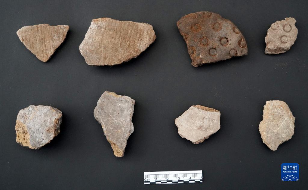 河北尚義縣四臺新石器時(shí)代遺址出土的戳印紋陶片(資料照片)。新華社發(fā)