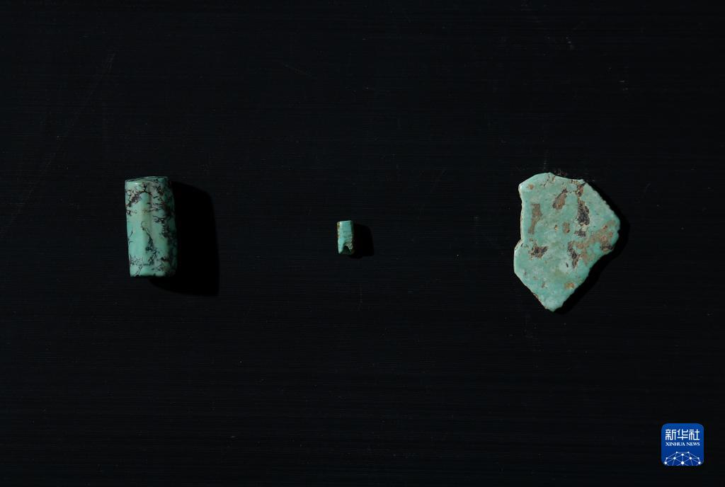 甘肅慶陽(yáng)市南佐新石器時(shí)代遺址出土的綠松石管與綠松石片(2022年8月25日攝)。新華社記者 李賀 攝
