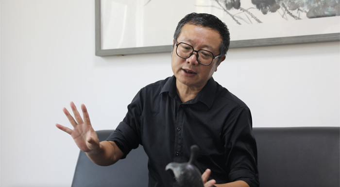 這里是他的一間新的工作室,位于他認為是五線(xiàn)城市山西陽(yáng)泉的中心地帶,工作室緊鄰的是由原來(lái)水泵廠(chǎng)改建的文化園。窗外,幾株白楊蔥蘢的樹(shù)葉閃爍著(zhù)夏日火辣耀眼的光影。上個(gè)世紀90年代,陽(yáng)泉水泵廠(chǎng)是全國水泵行業(yè)骨干企業(yè),生產(chǎn)的近900個(gè)品種的各類(lèi)泵產(chǎn)品暢銷(xiāo)海內外。