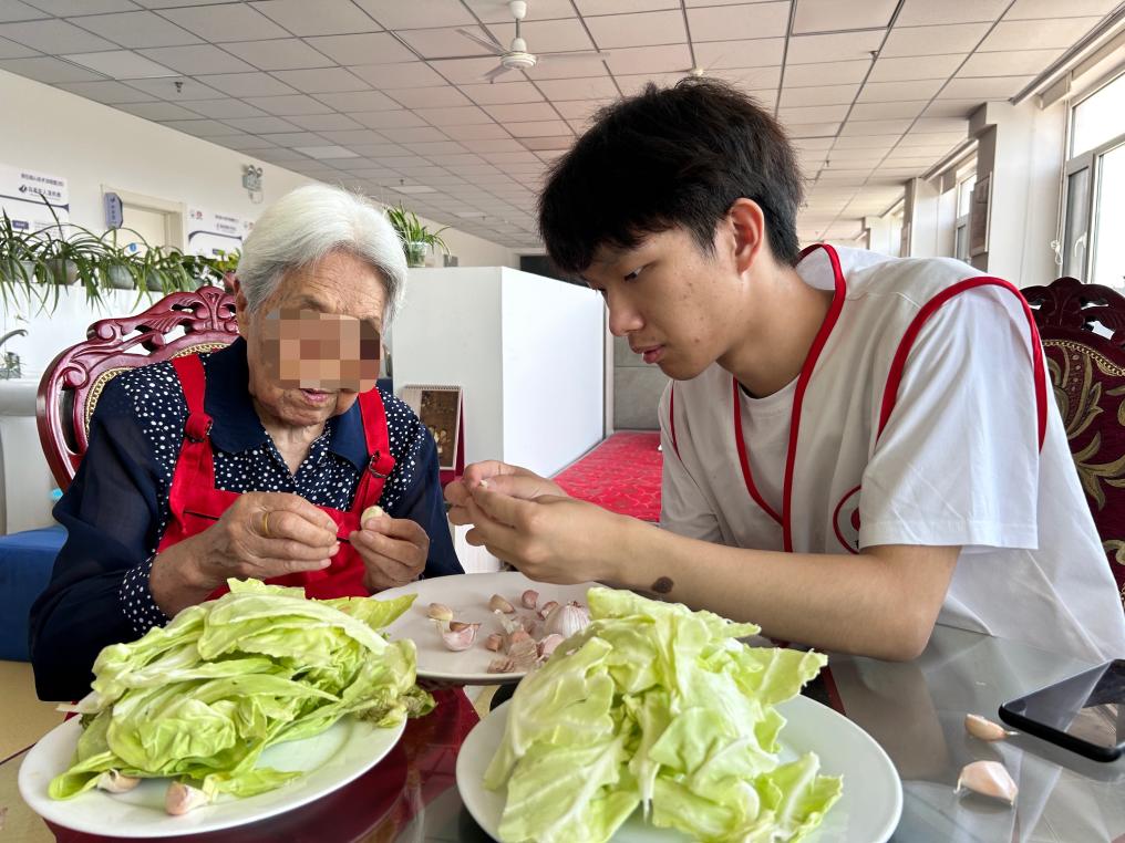 2023年6月16日,醫務(wù)社工協(xié)助認知癥老人備菜。