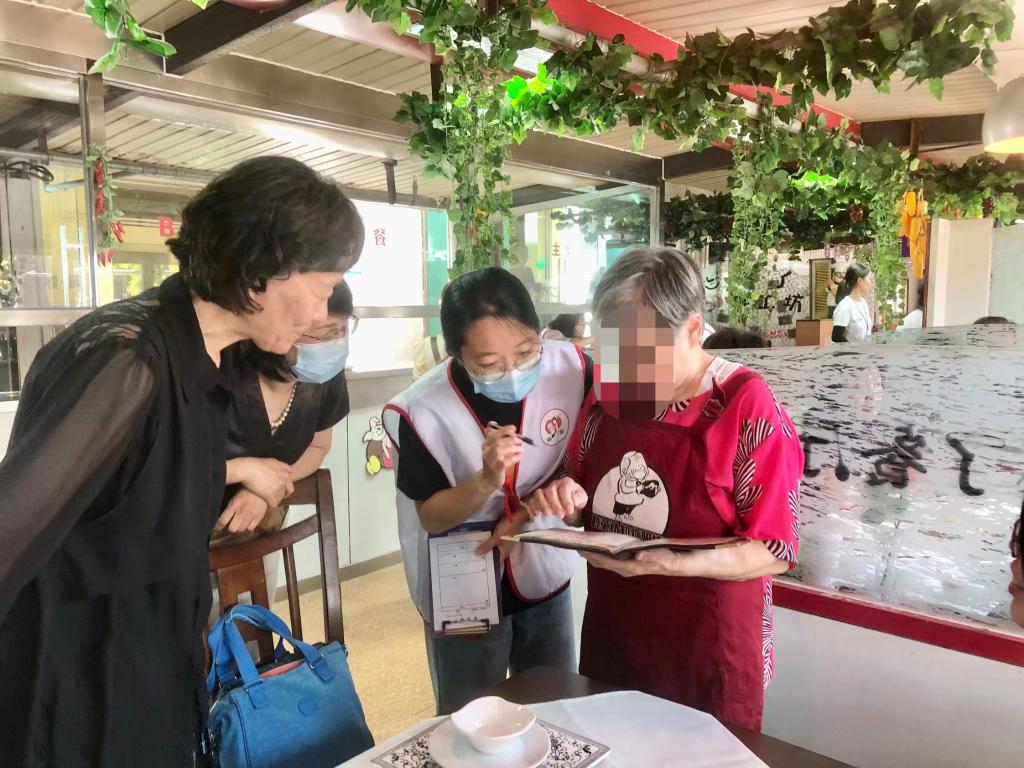 2023年9月20日,在“忘不了餐廳”,醫務(wù)社工協(xié)助認知癥老人為顧客點(diǎn)餐。