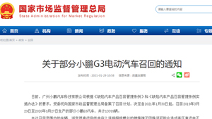 存安全隱患,小鵬汽車(chē)召回13399輛小鵬G3汽車(chē)