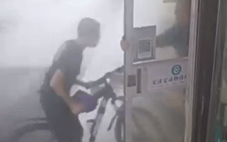 疾風(fēng)驟雨,他主動(dòng)推門(mén)讓行人進(jìn)店躲避。