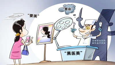 “黑醫美”向縣鄉下沉的苗頭不容忽視。他們躲到哪里,監管就應跟到哪里,精準打擊。但在圍堵的同時(shí),也要設法滿(mǎn)足基層群眾對“美”的追求。一方面,要增加正規醫美服務(wù)供給;另一方面,要通過(guò)普及法律知識和醫美常識,提高鄉村消費者的辨別能力,讓他們能遠離“黑醫美”。
