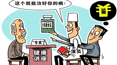 近日有媒體報道,網(wǎng)上有人打著(zhù)中醫的幌子賣(mài)課圈錢(qián)。那些自稱(chēng)“神醫傳人”“國醫名師”的講師,根本沒(méi)有培訓資質(zhì)。養生保健“坑老”騙局其實(shí)并不新鮮??域_的一大“訣竅”是,渲染和利用老年人的健康焦慮。針對專(zhuān)坑老人的“養生騙局”,必須持續加大打擊力度,進(jìn)一步加強保健品監管。