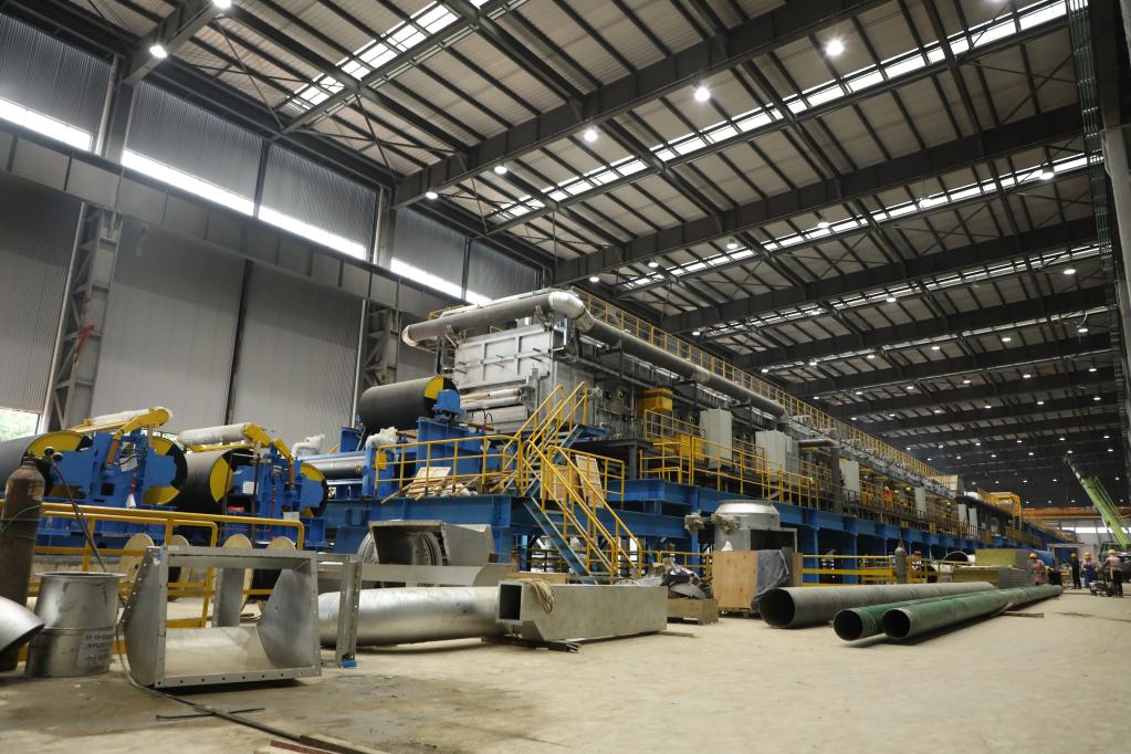 順著(zhù)張江斌手指的方向望去,一臺3米多寬、100多米長(cháng)的大型設備映入眼簾。這是中國首臺套輥底爐,2020年建成投產(chǎn),從此打破了我國高端鋁合金生產(chǎn)關(guān)鍵裝備技術(shù)依賴(lài)進(jìn)口的被動(dòng)局面。