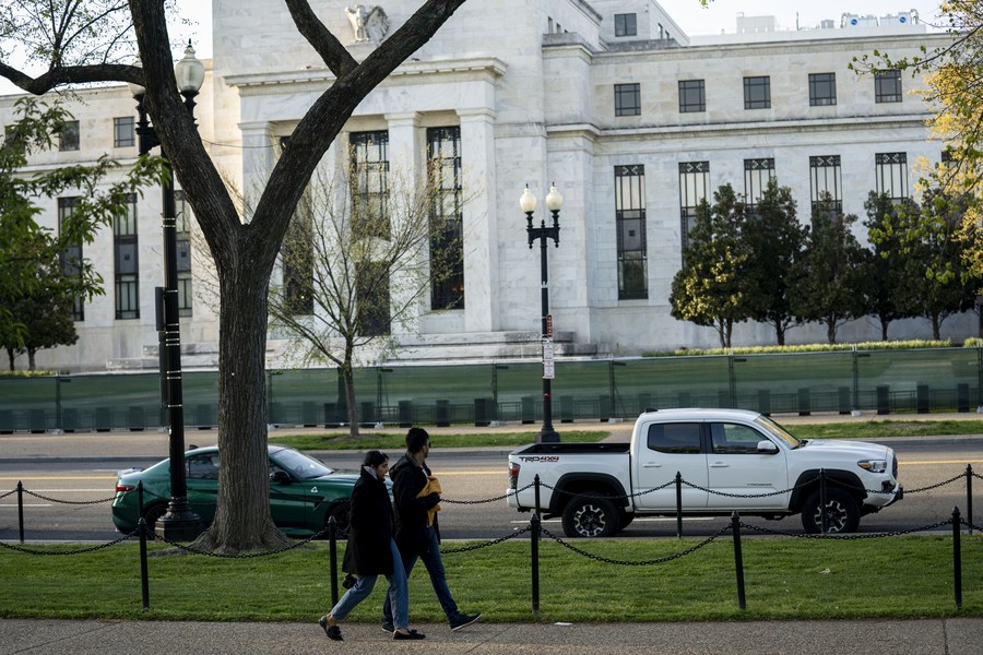 這是4月20日在美國華盛頓拍攝的美聯(lián)儲大樓。新華社記者劉杰攝