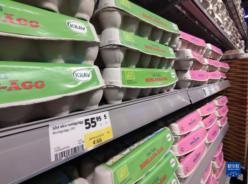 這是4月14日在瑞典斯德哥爾摩一家超市內拍攝的雞蛋?!⌒氯A社發(fā)(魏學(xué)超攝)