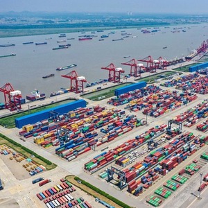 這是5月6日拍攝的江蘇省港口集團南京港龍潭集裝箱有限公司港口(無(wú)人機照片)。江蘇省港口集團在做好疫情防控的同時(shí),積極發(fā)揮港航一體化體系優(yōu)勢,全力確保產(chǎn)業(yè)鏈、供應鏈安全穩定。新華社記者李博 攝