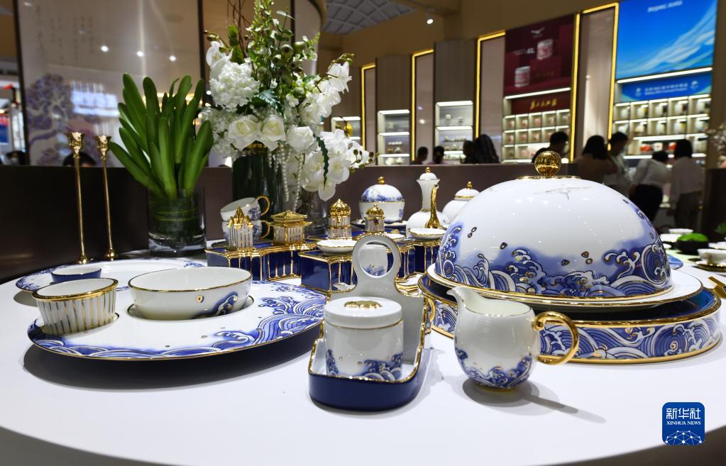 參展商深圳國瓷永豐源股份有限公司展出的瓷質(zhì)餐具(7月26日攝)。新華社記者 楊冠宇 攝