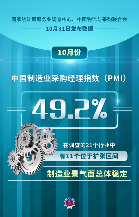 10月份中國制造業(yè)采購經(jīng)理指數(PMI)為49.2%? 新華社發(fā) 程碩 制圖