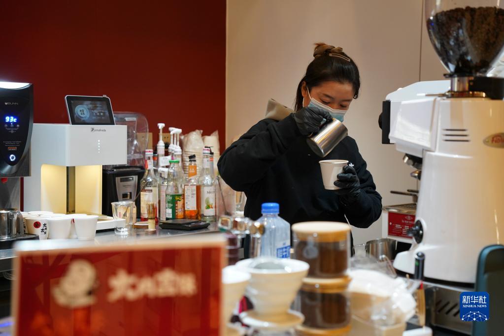 1月31日,“大內·宮?!笨Х鹊甑牡陠T在制作咖啡。 新華社記者 魏弘毅 攝