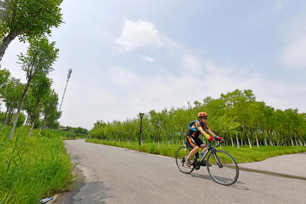 游客在天津綠色生態(tài)屏障內騎行。新華社記者 趙子碩 攝