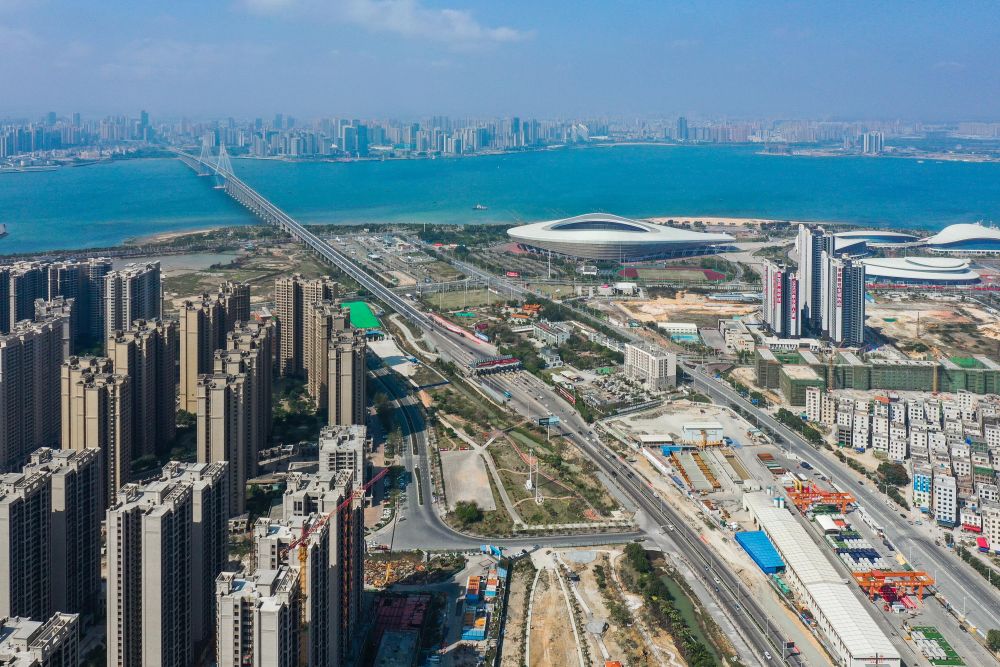 2月28日,廣湛鐵路湛江灣海底隧道盾構區間“過(guò)海穿城”(無(wú)人機照片)。新華社記者 劉大偉 攝