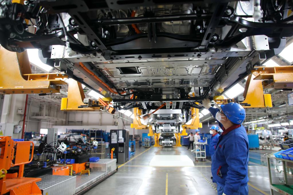 2月3日,安徽蕪湖,工人在奇瑞汽車(chē)股份有限公司新能源二期工廠(chǎng)總裝車(chē)間作業(yè)。新華社記者曹力 攝