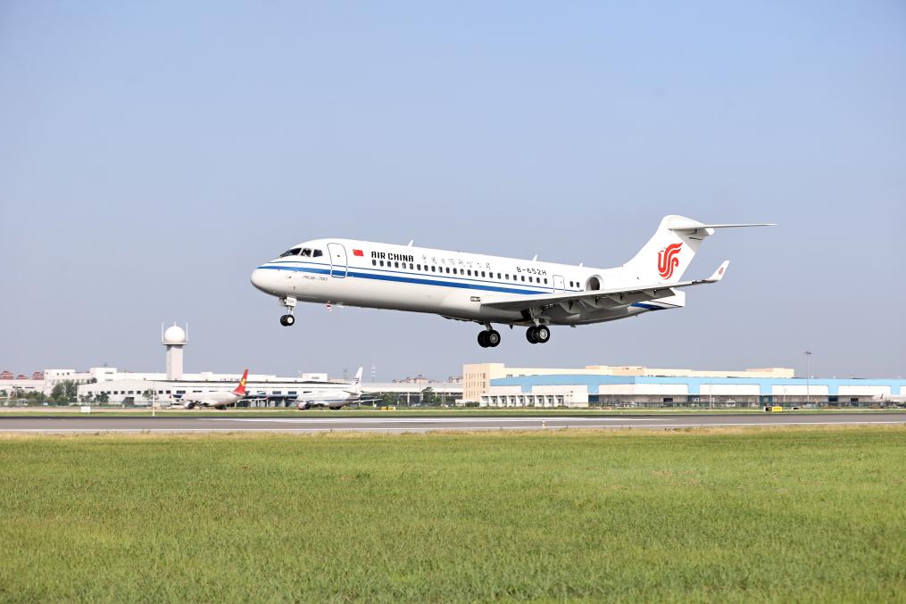 天津東疆以租賃形式交付的第2000架飛機降落在天津濱海國際機場(chǎng)。新華社記者 趙子碩 攝