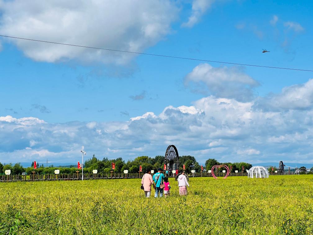 游客在寧安市渤海鎮上官地村的稻田中漫步。新華社記者劉赫垚 攝