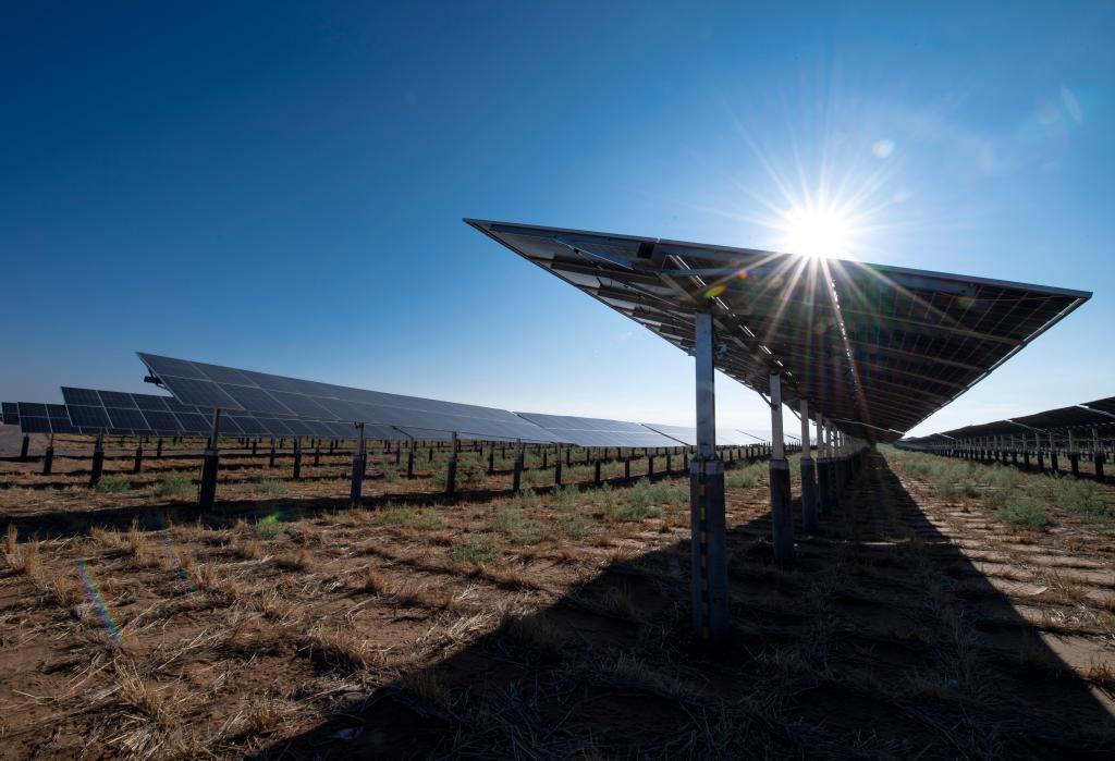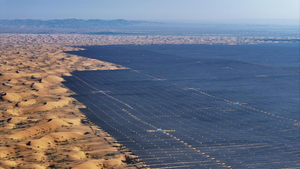↑ 位于寧夏中衛市的騰格里沙漠新能源基地。