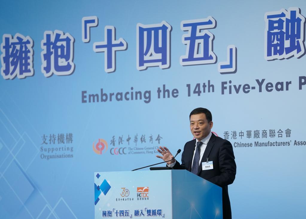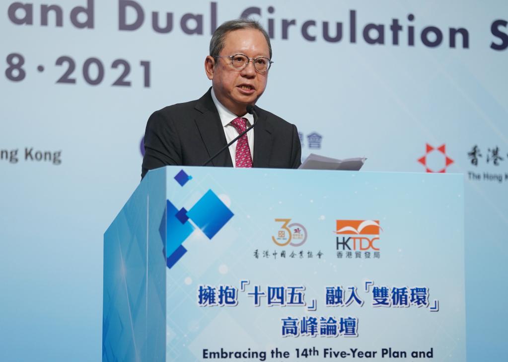 作為國家“十四五”規劃宣講團在港系列宣講活動(dòng)的重要組成部分,“擁抱‘十四五’ 融入‘雙循環(huán)’”高峰論壇24日在香港會(huì )展中心舉行,由香港中國企業(yè)協(xié)會(huì )和香港貿發(fā)局主辦。來(lái)自香港工商界、學(xué)術(shù)界、外國商會(huì )和外資企業(yè)代表,以及中企協(xié)會(huì )會(huì )員代表等300余人與會(huì )。林建岳出席論壇開(kāi)幕式時(shí)發(fā)表上述致辭。
