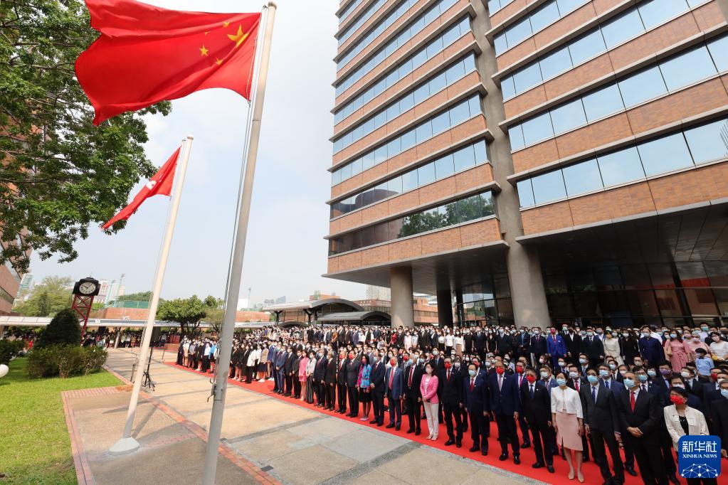 10月1日,香港理工大學(xué)舉行升旗儀式。新華社發(fā)