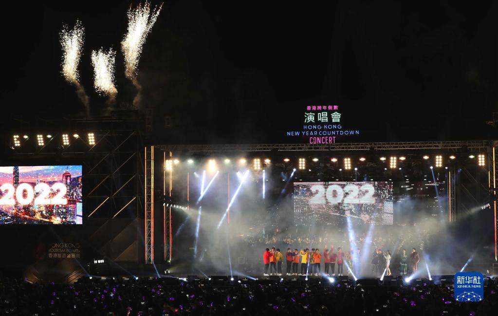 這是2022年1月1日凌晨拍攝的演唱會(huì )現場(chǎng)。2021年12月31日晚,香港跨年倒數演唱會(huì )在西九文化區藝術(shù)公園舉行。新華社記者 李鋼 攝
