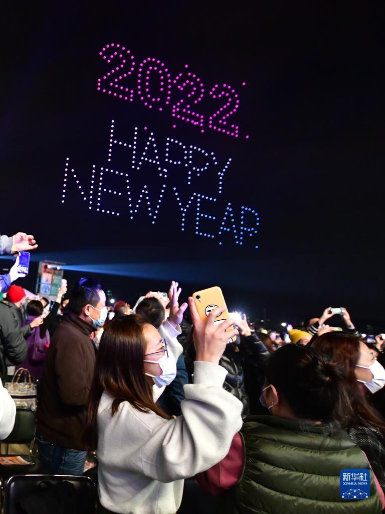 新華社香港12月31日電(記者劉明洋、陳珮盈、韋驊)31日晚,維多利亞港灣星光璀璨,520架無(wú)人機升入空中,勾勒出千變萬(wàn)化的圖案;“2021美麗的夜香港跨年演唱會(huì )”正在中環(huán)海濱活動(dòng)空間舉行。是夜,觀(guān)眾一起倒數,在現場(chǎng)送舊迎新的歡樂(lè )氣氛及此起彼落的“新年快樂(lè )”祝福聲中,共同迎接新的一年。