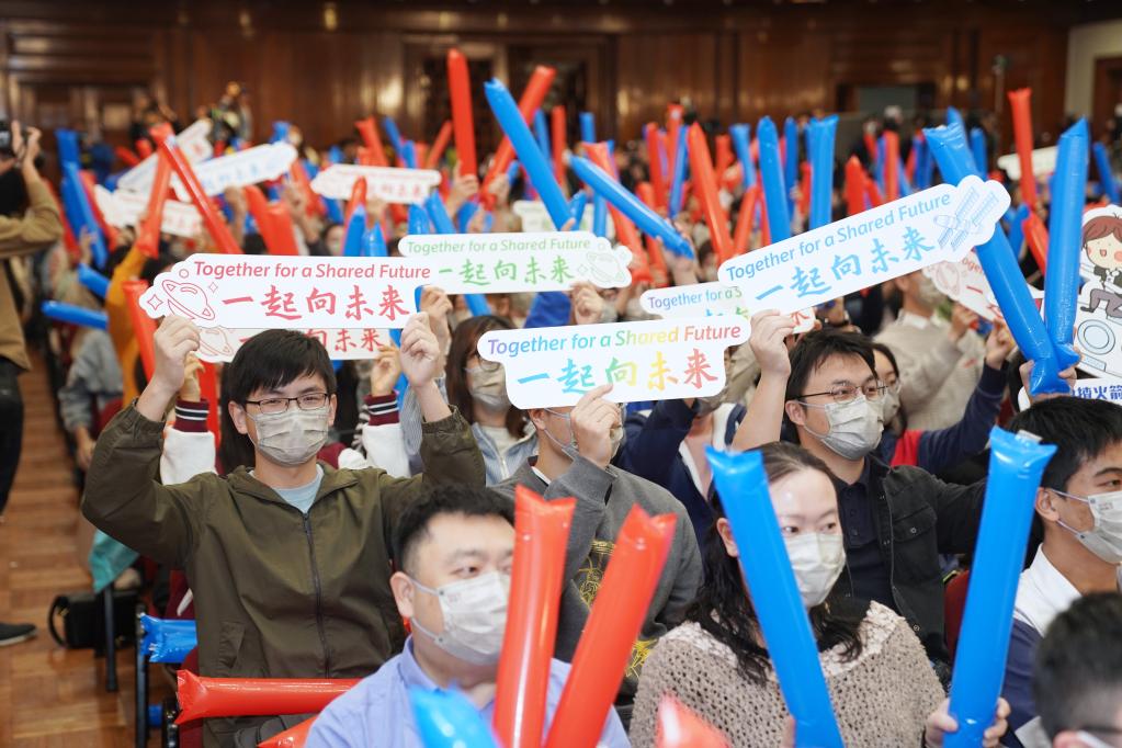 在香港大學(xué)拍攝的“元旦京港澳天宮對話(huà)”活動(dòng)香港分會(huì )場(chǎng)。新華社記者 王申 攝