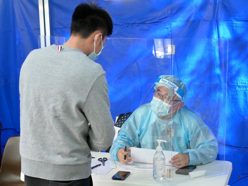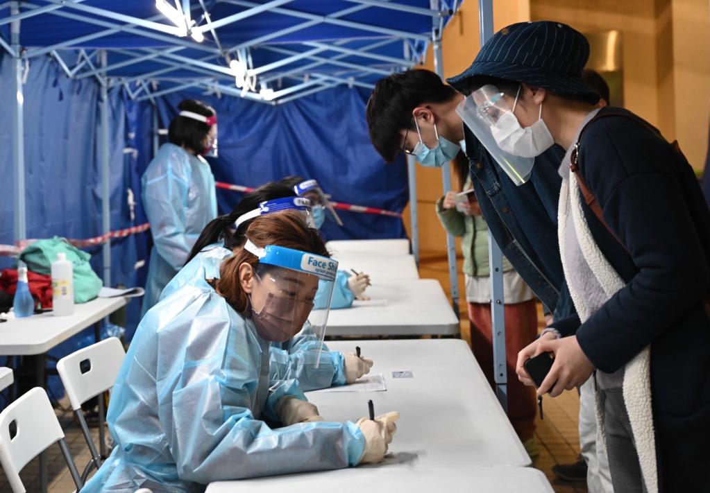 正在進(jìn)行圍封或強制檢測的葵涌邨居民在登記(資料照片)。新華社發(fā)
