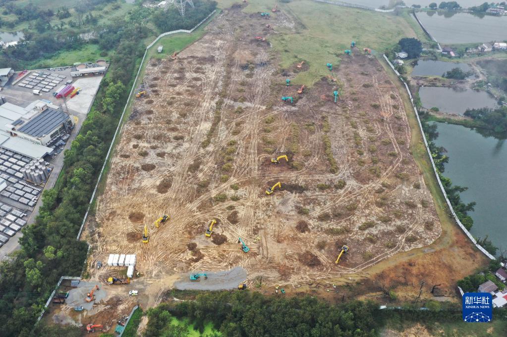 2月22日拍攝的香港元朗潭尾臨時(shí)性社區隔離治療設施建設現場(chǎng)。新華社發(fā)