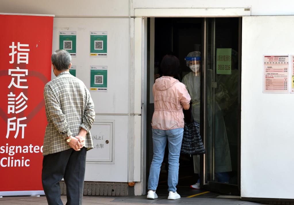 3月5日,在香港灣仔,市民在政府指定診所候診。新華社記者 盧炳輝 攝