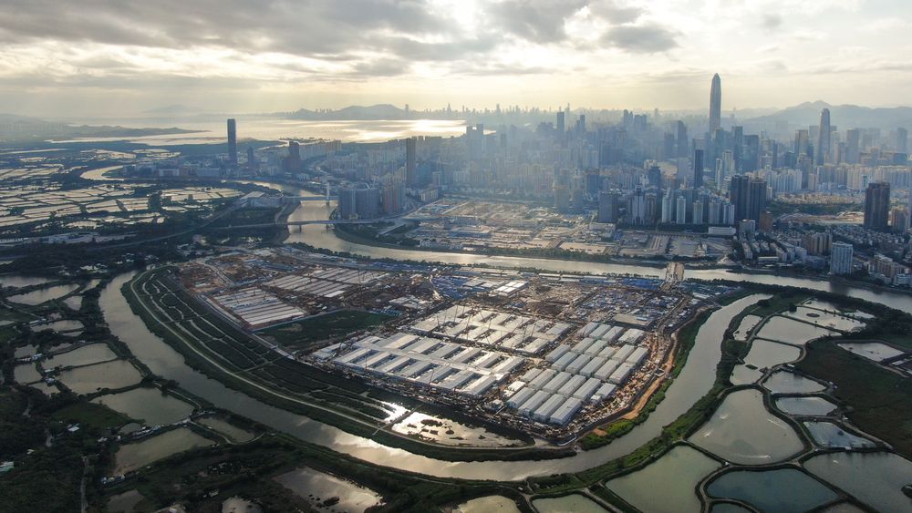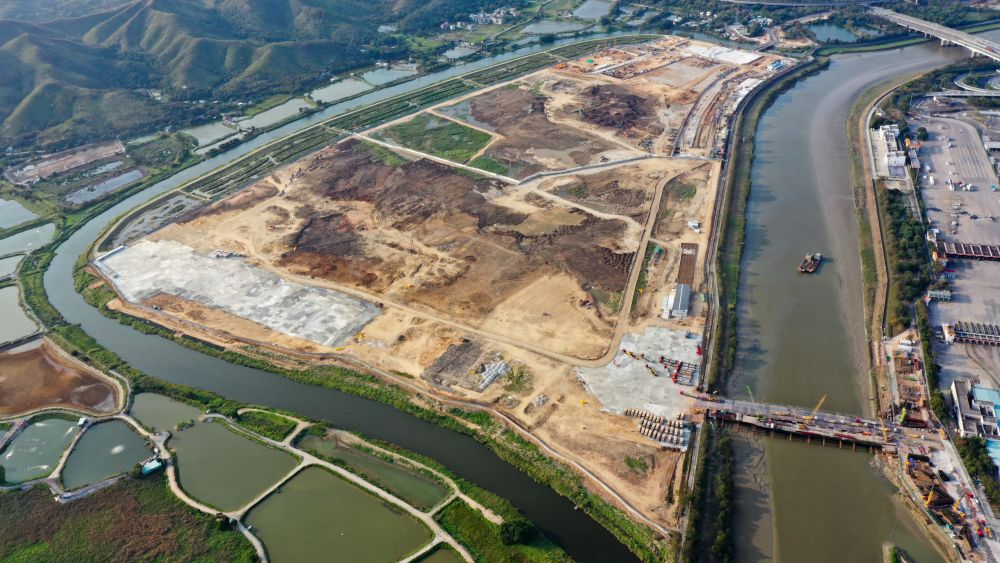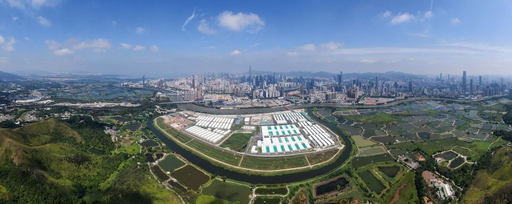這是中央援港應急醫院和落馬洲方艙設施項目全景圖(5月6日攝)。