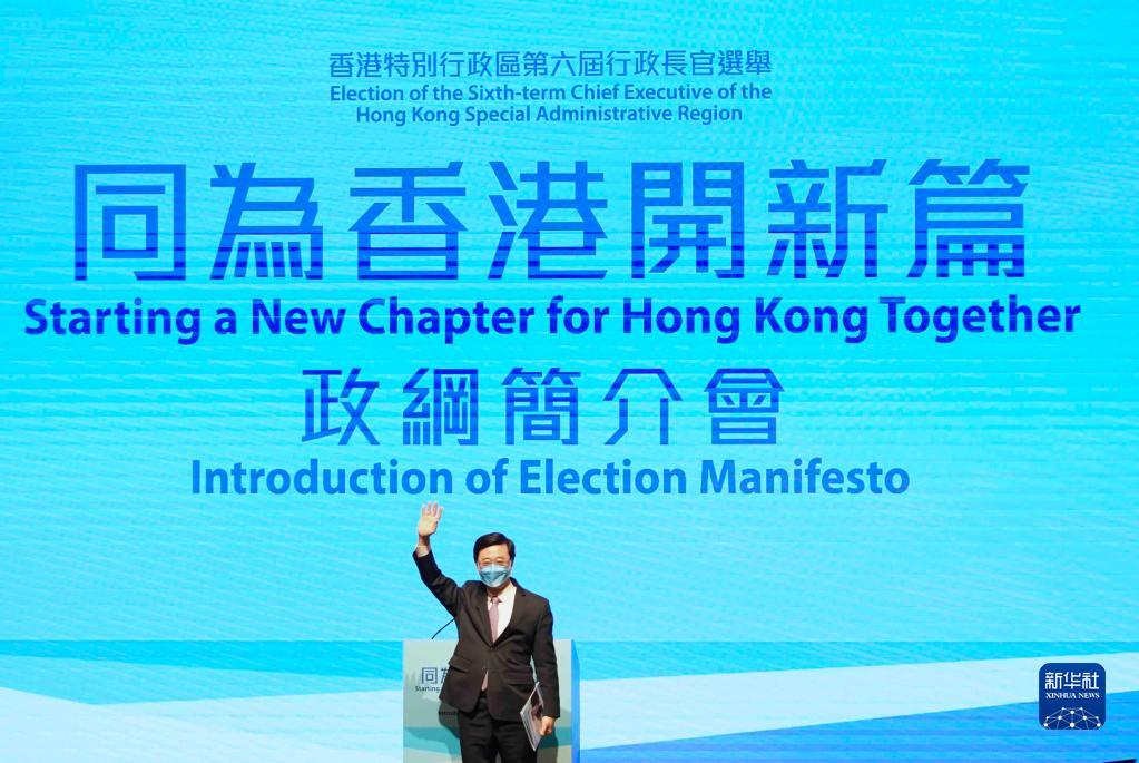 香港特區第六屆行政長(cháng)官選舉候選人李家超舉行政綱簡(jiǎn)介會(huì )(4月29日攝)。新華社記者 呂小煒 攝