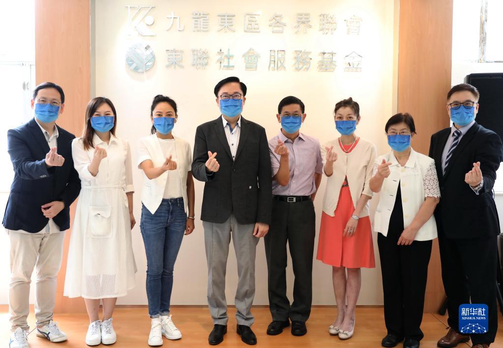 “抗逆心聆熱線(xiàn)”團隊部分成員合影:(自左至右)熱線(xiàn)發(fā)起人之一、觀(guān)塘區區議會(huì )主席柯創(chuàng )盛,熱線(xiàn)義工、香港大學(xué)心理學(xué)系學(xué)生林綺荻,熱線(xiàn)發(fā)起人之一、東聯(lián)社會(huì )服務(wù)基金永遠榮譽(yù)主席梁慧慧,熱線(xiàn)發(fā)起人之一、東聯(lián)社會(huì )服務(wù)基金會(huì )長(cháng)李志峰,熱線(xiàn)義工、臨床心理學(xué)家徐佩宏,熱線(xiàn)發(fā)起人之一、精神科專(zhuān)科醫生林美玲,熱線(xiàn)義工、香港護士總工會(huì )會(huì )長(cháng)蘇肖娟,熱線(xiàn)發(fā)起人之一、香港情緒健康學(xué)會(huì )會(huì )長(cháng)黃廣興(4月29日攝)。 新華社記者 吳曉初 攝