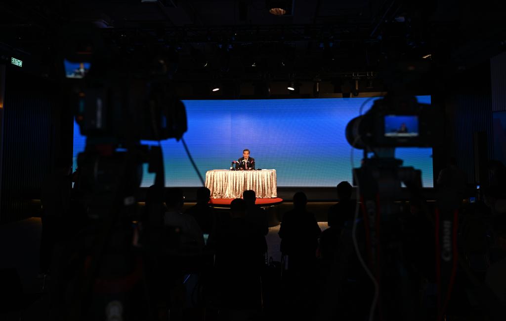 全國政協(xié)副主席、香港特區前行政長(cháng)官梁振英在香港接受記者采訪(fǎng)(6月6日攝)。新華社記者金良快攝