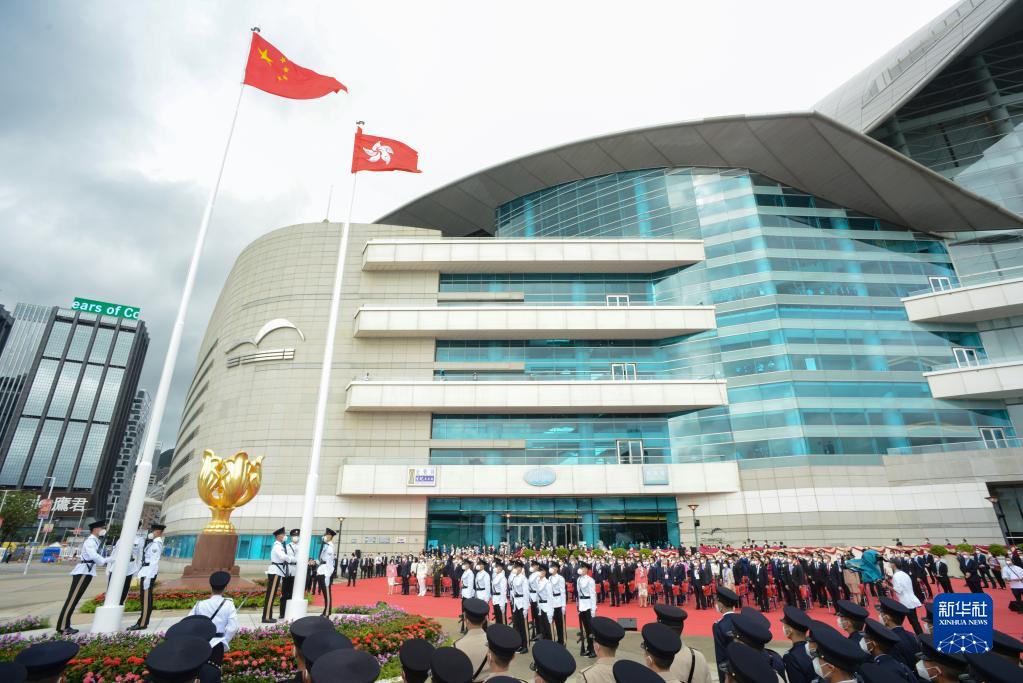 7月1日,香港特區政府在金紫荊廣場(chǎng)舉行升旗儀式,慶祝香港回歸祖國25周年。新華社發(fā)