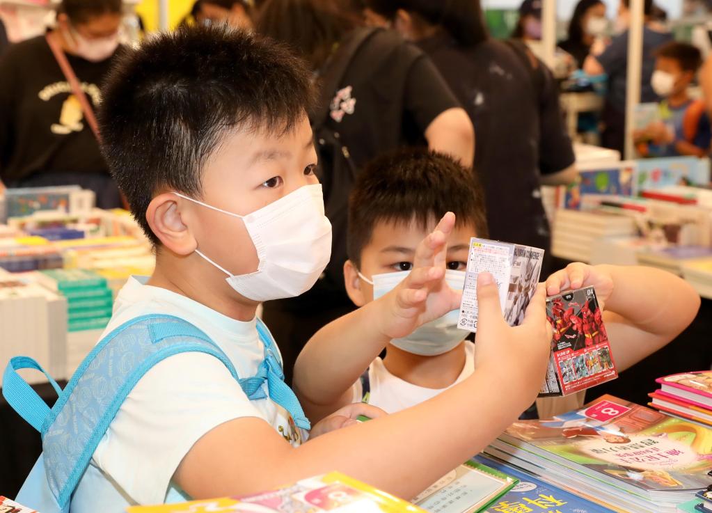 小朋友在香港書(shū)展現場(chǎng)。新華社記者 吳曉初 攝
