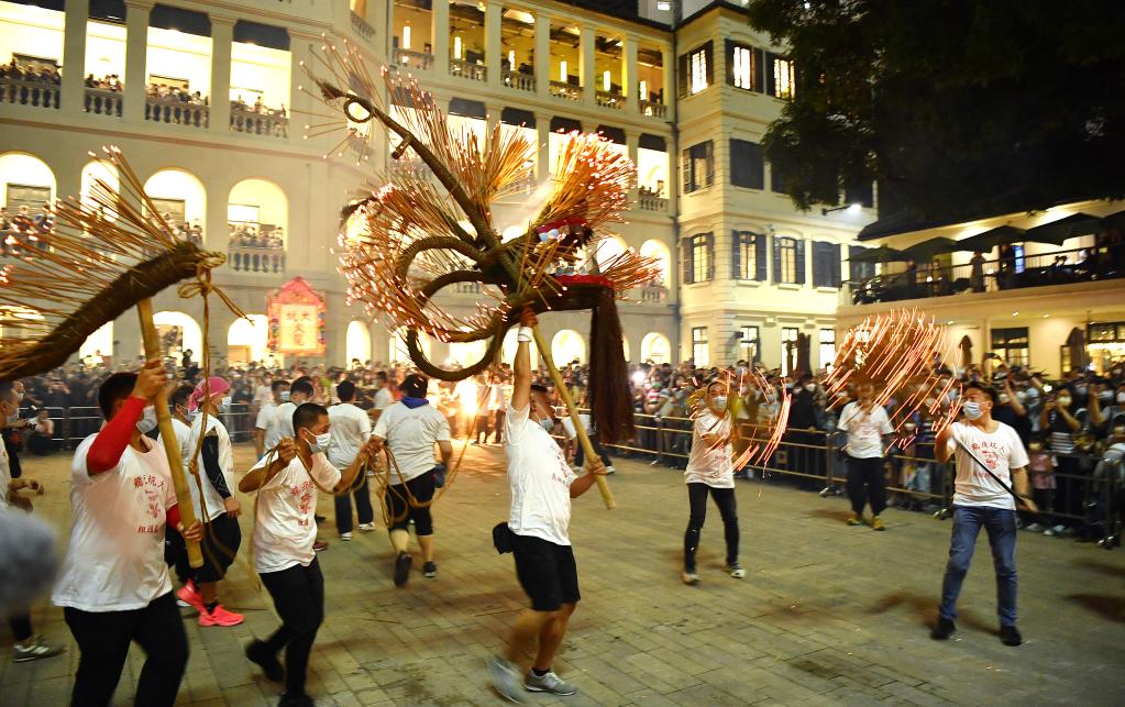 11月20日晚,在香港中環(huán)的歷史建筑大館,一場(chǎng)非遺表演吸引了眾多市民觀(guān)看,這便是香港傳統民俗活動(dòng)——大坑舞火龍。