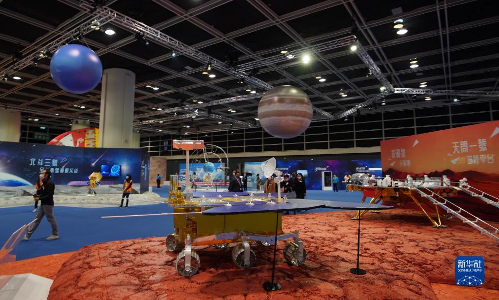 新華社香港12月12日電(記者陸蕓)“祝融號”火星車(chē)1:1模型、萬(wàn)米載人潛水器“奮斗者”號模型、時(shí)速600公里高速磁浮列車(chē)系統……一系列“大國重器”12日亮相香港會(huì )展中心,讓市民有機會(huì )近距離參觀(guān)國家大型科技項目。