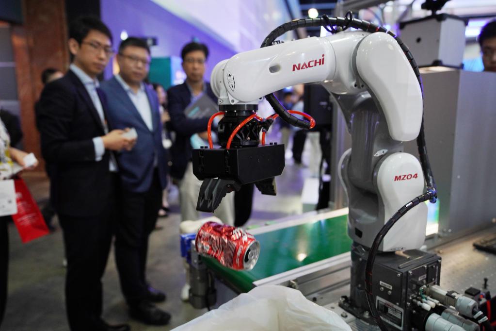 4月12日在首屆香港國際創(chuàng )科展上拍攝的進(jìn)行垃圾分類(lèi)的機器臂。新華社記者 呂小煒 攝