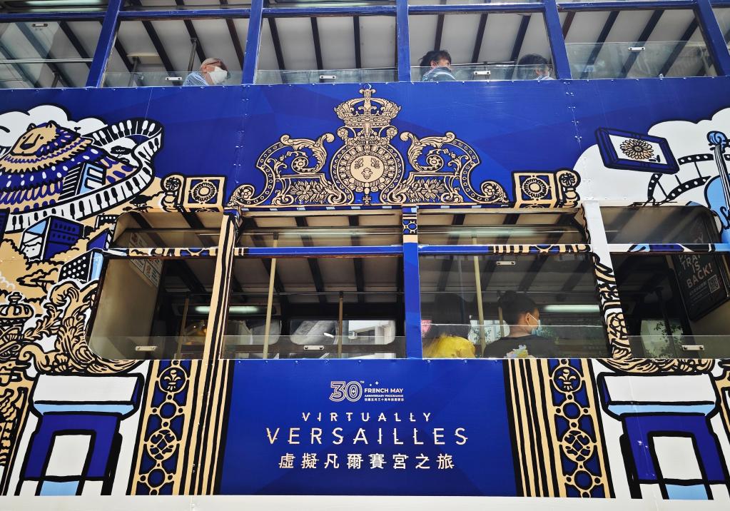 這是5月18日在香港拍攝的“虛擬凡爾賽宮之旅”展車(chē)體廣告。新華社記者 王申 攝