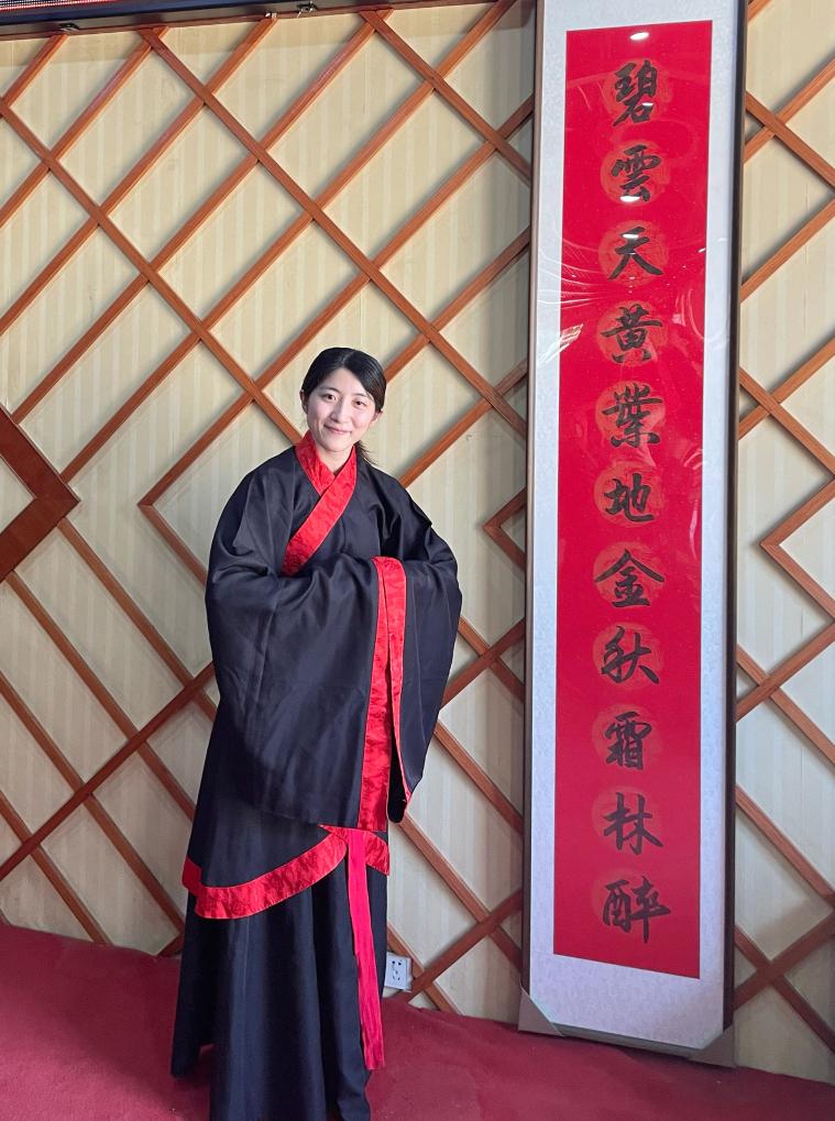 署理高級督察倪百禧試穿漢服(2023年7月攝,資料照片)。新華社發(fā)