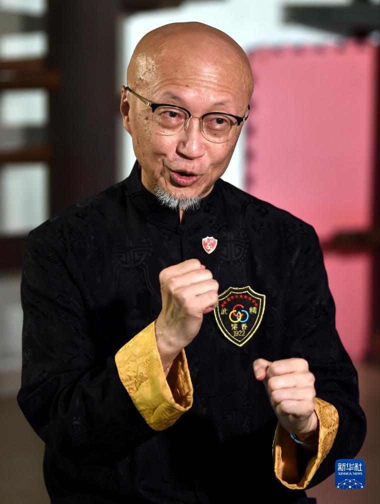 香港精武體育會(huì )主席柯俊龍接受采訪(fǎng)(8月18日攝)。新華社記者 盧炳輝 攝